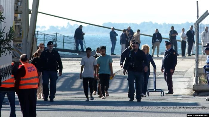 A coast guard ship took 43 migrants from the port of Shengjin, 66 kilometres (40 miles) northwest of Tirana’s capital. They were among the 49 men transferred to Albania on Tuesday’s Italian naval ship. Six were returned the same day for being minors or deemed vulnerable. The men were from Bangladesh, Egypt, Ivory Coast and Gambia.